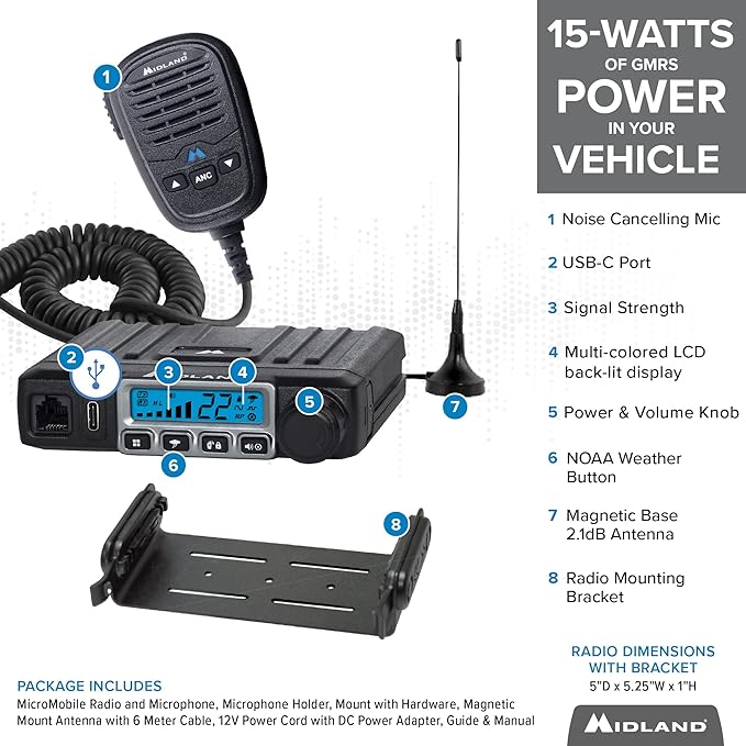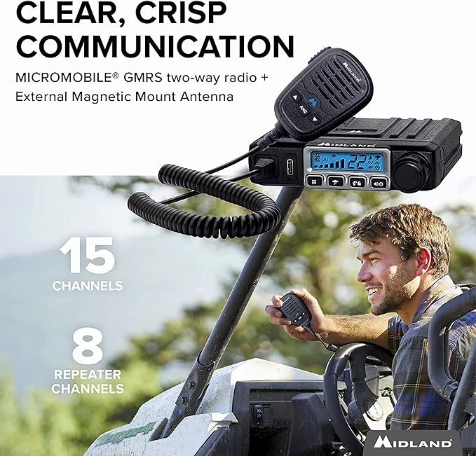 - MIDLAND MICROMOBILE: Take your radio range to the next level with the most powerful GMRS two-way radios on the market. These compact radios bring reliable and versatile communication to overlanders, off-roaders, farmers, RV’ers, and others. The MicroMobile is compatible with all Midland FRS/GMRS walkie talkies. Whether on a hunting trip, exploring outdoors, or working on a farm, the MicroMobile can help you stay connected with your team or family, even when you're far from civilization.