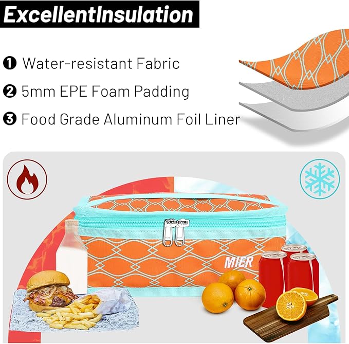 MIER Portable Thermal Insulated Cooler Bag Mini Lunch Bag for Kids, Orange