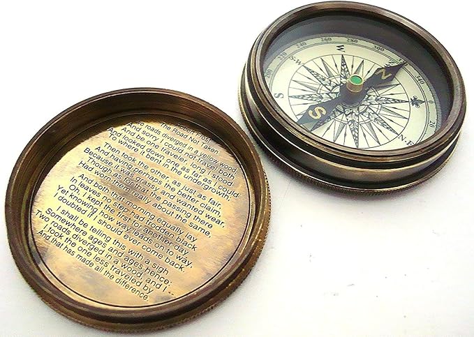 Robert Frost Poem Compass-Pocket Compass w Leather Case Rustic Vintage Home Decor Gifts