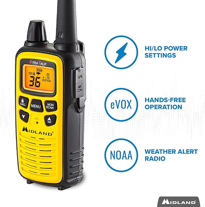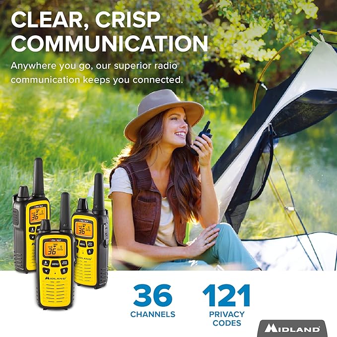 Midland 36 Channel FRS Two-Way Radio - Long Range Walkie Talkie, 121 Privacy Codes, NOAA Weather Scan + Alert (Yellow/Black, 3-Pack)