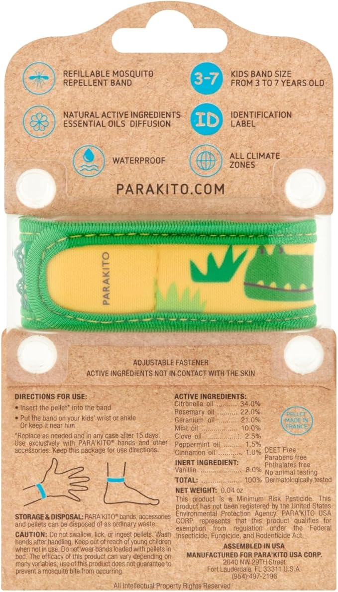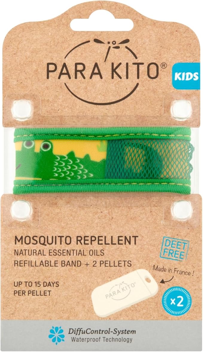 PARA'KITO Bug & Mosquito Bracelets for Kids | Mosquito Spray Alternative | Waterproof, Outdoor Insect Wristband w/Natural Essential Oils | Hiking, Trekking & Camping Accessories (Crocodile)