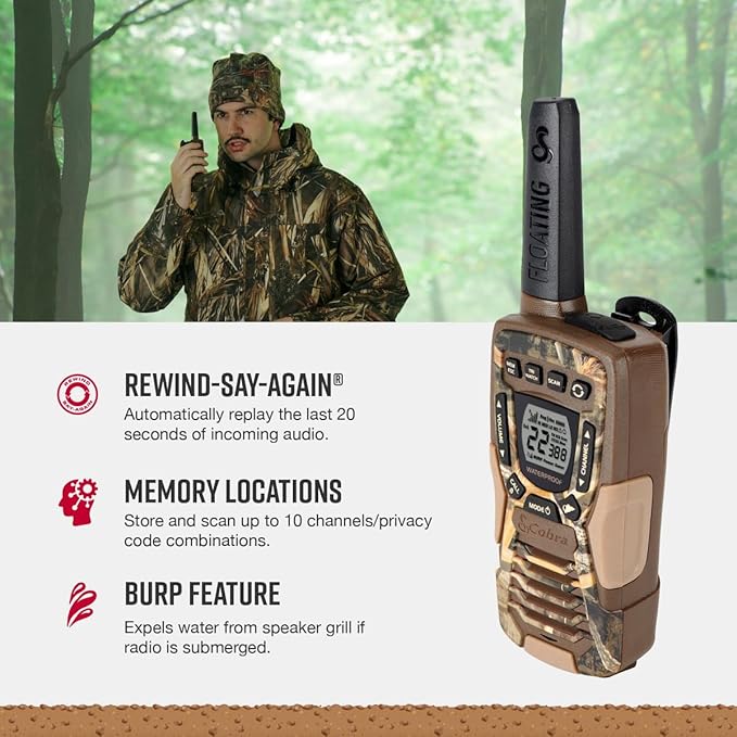 Cobra ACXT1035R FLT CAMO Walkie Talkies 37-Mile Two-Way Radios with Rewind-Say-Again (Pair)