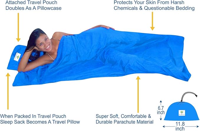 - TRAVEL PILLOW + PILLOW CASE - when stuffed in its attached travel bag, the sleep sack can be used as a comfy travel pillow on planes, trains or buses. When you use the sleep sack in bed, the attached travel bag makes for an ideal pillowcase