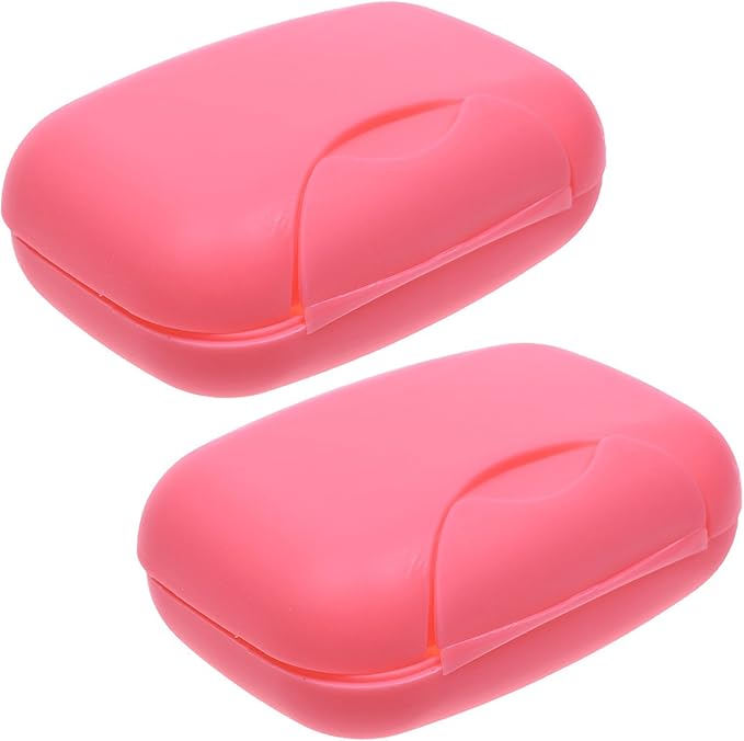 2 Pcs Plastic Soap Case Holder Container Box Home Outdoor Hiking Camping Travel Pink