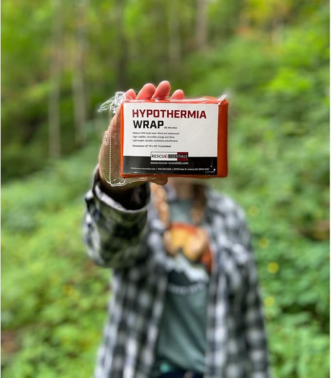 Rescue Essentials Hypothermia Wrap Blanket, Oversized 60" x 96", Mylar/Lightweight Polyethylene Fabric (Orange)