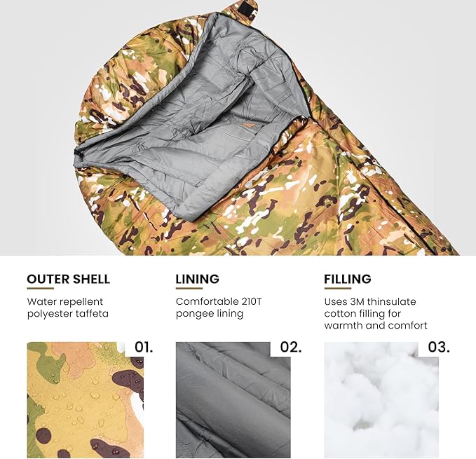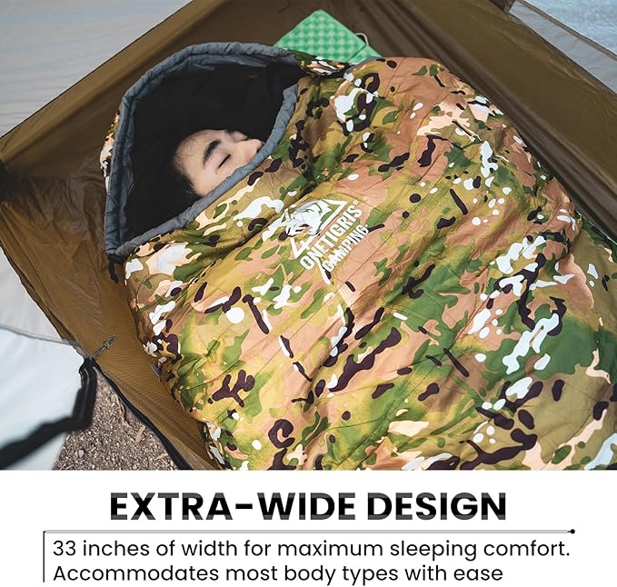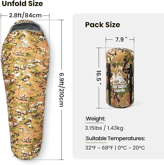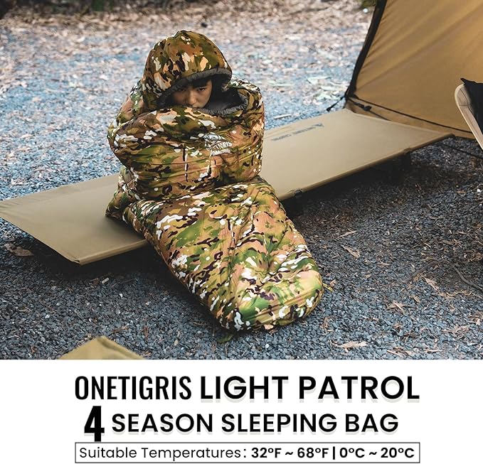 OneTigris Light Patrol 4 Season Mummy Sleeping Bag, 32°F Cold Weather Camping Bags for Camping Hiking Backpacking, Survival Gear