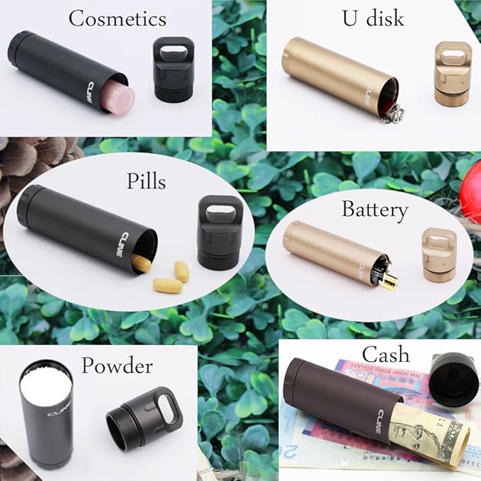 - ★Lightweight & Waterproof,with keychain top design,easy to carry,reduce your burden in outdoors.This edc survival container can be used packaging storage,such as first aid supplies,liquid,pills,money or powder