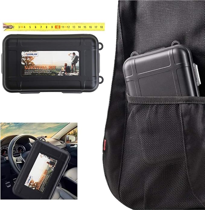 - ➤【FITS INTO BACKPACK, LIGHTWEIGHT, DURABLE AND WATERPROOF CARRY CASE】 The dimensions of our professional survival gear is 4.1 x 1.8 x 6.3 inches. The entire box weighs only 0.98 pounds. This ultimate kit is compact enough to easily fit into your backpack and car