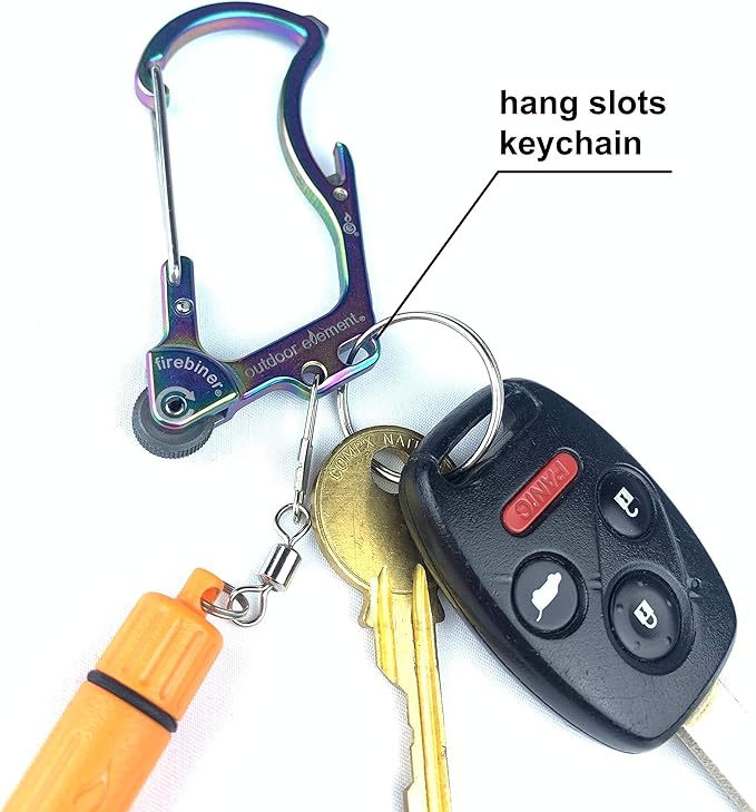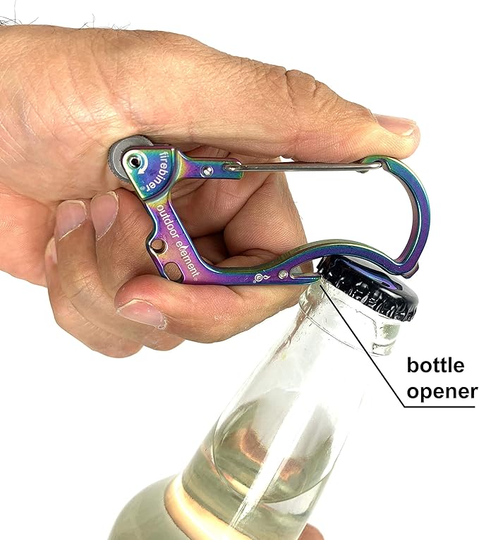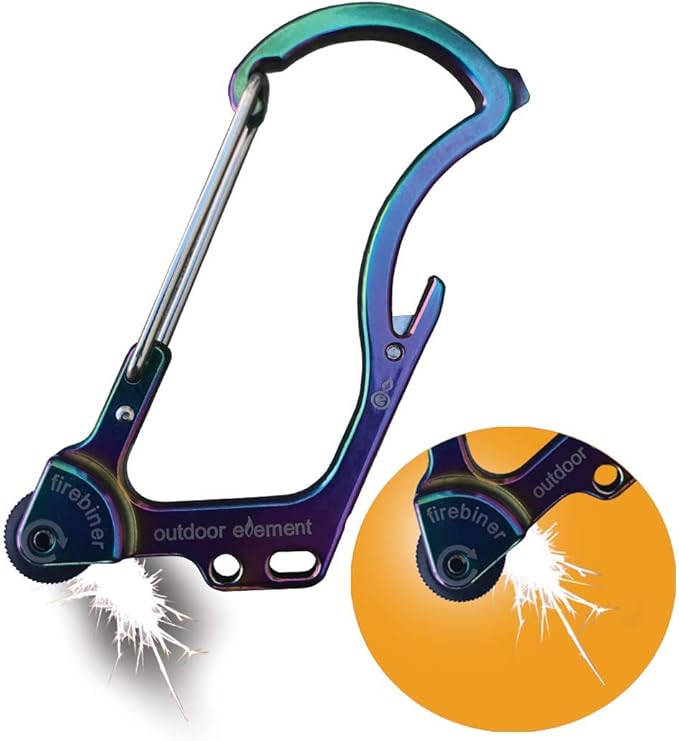 - GREAT FOR CAMPING & HIKING: The Firebiner's versatile design is great for starting a fire, clipping to a backpack, carrying keys, opening bottles while out and about, and much more...