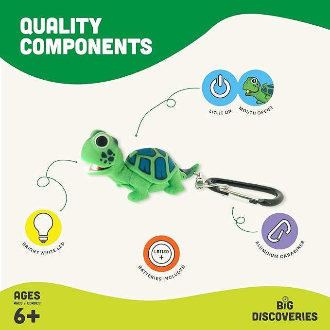 Big Discoveries WildLight Animal Carabiner Flashlight - Fun Mini Keychain Flash Lights for Kids, Nurses, Camping