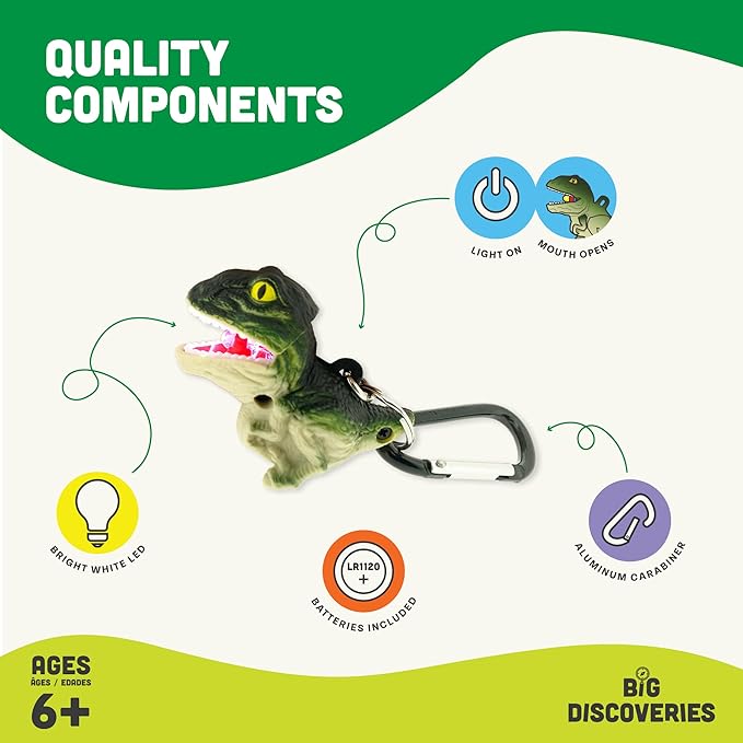 Big Discoveries WildLight Animal Carabiner Flashlight - Fun Mini Keychain Flash Lights for Kids, Nurses, Camping