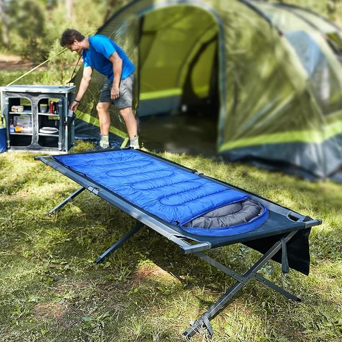 - VERSATILE SLEEPING COTS FOR ADULTS: This folding camping cot is a versatile option for sleeping outdoors or indoors. Whether you're camping, backpacking, or just need an extra bed for guests, this cot provides a comfortable and convenient sleeping solution.