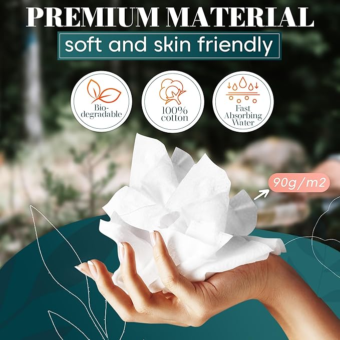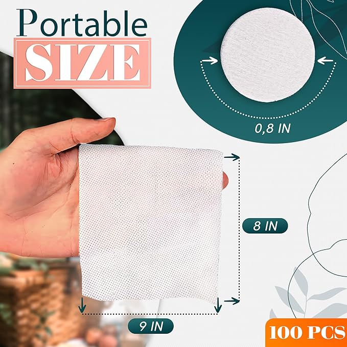 - Package Includes Disposable Compressed Towel: In our package of disposable face towels for drying face you will have 100 pieces of camping towels. These portable compressed face towels are all of the same size.