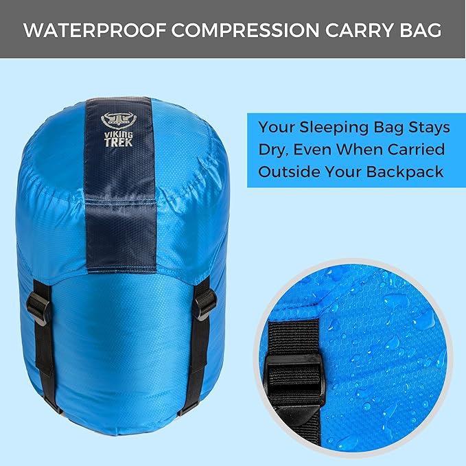 Viking Trek 350x Lightweight Adult Sleeping Bag – Warm & Breathable, Compact Camping Gear for Hiking and Backpacking - Camping Essentials - Includes 100% Waterproof Stuff Sack