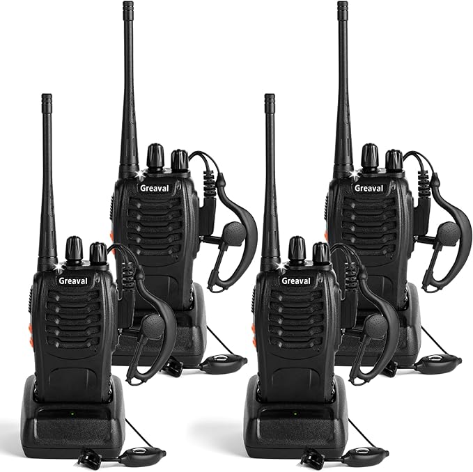 Rechargeable Walkie Talkies Long Range for Adults with Earpieces, 16 Channel Walky Talky Handheld Two Way Radios with Flashlight Li-ion Battery and Charger(Pack of 4)