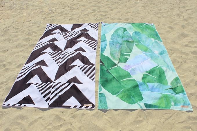 Microfiber Beach Towel & Bag. Lightweight, Compact & Quick-Dry. For Travel, the Beach, Pool, Gym, Yoga & Camping. Extra Large (71x35.5), Tropical Leaves