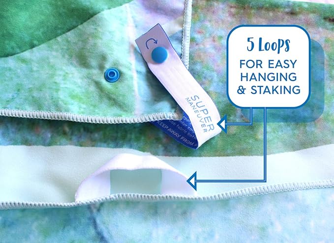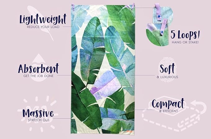 - ATTACHES TO ANYTHING! Five loops enable easy attaching to sun beds, hanging for supercharged dry times, or staking down into the sand on windy days (stakes not included).
