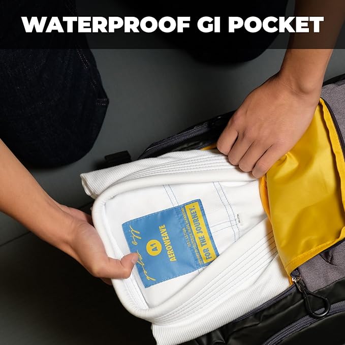 - Waterproof Gi Pocket: Keep your clean clothes clean, and your sweaty gear separate. Easily pack a dirty gi or rashguard in our backpack's waterproof pocket to keep your gear stink-free!