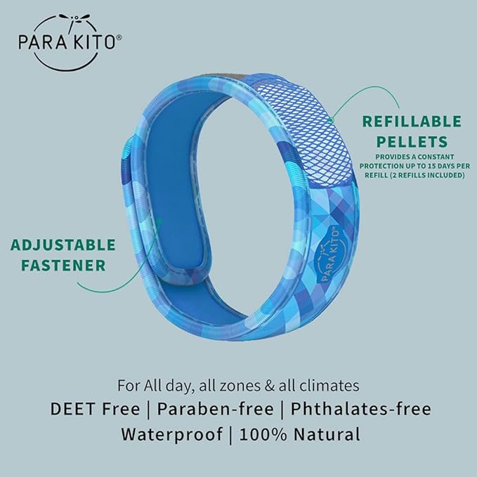 - WATERPROOF & REFILLABLE: All day, all zones, all climates! Whether you are strolling through a forest or snoozing on a tanning bed, PARA’KITO wristbands provide constant protection for 15 days per refillable pellet (2 pellets Included).