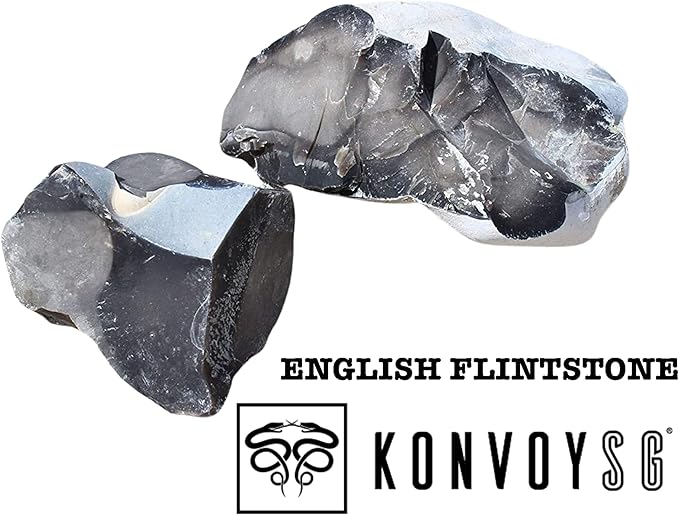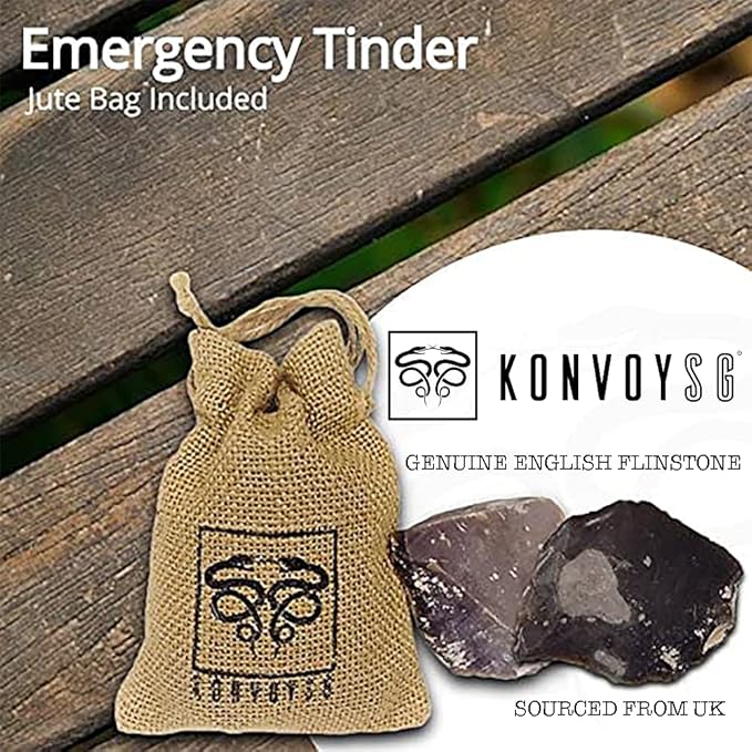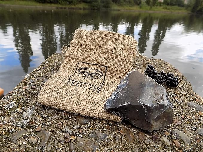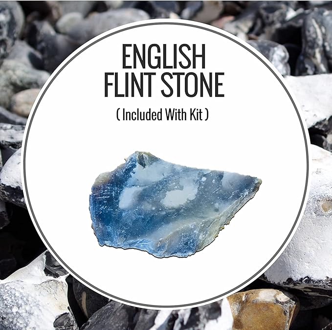 English Flint Stone Rock for Use with A Carbon Steel Striker (not included) for Bushcraft, survival and Camping Activities. Comes in an Emergency Tinder Jute Bag.