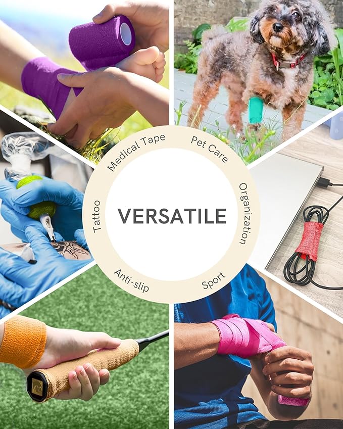 - 🌈Versatile Protection: Say hello to total care and comfort with our 12 rolls self-adhesive bandage pack. No matter the situation - sports injuries or post-surgery care - our bandage has got you covered. Offering versatile protection and unparalleled comfort, it's the ultimate solution for all your wound care needs.