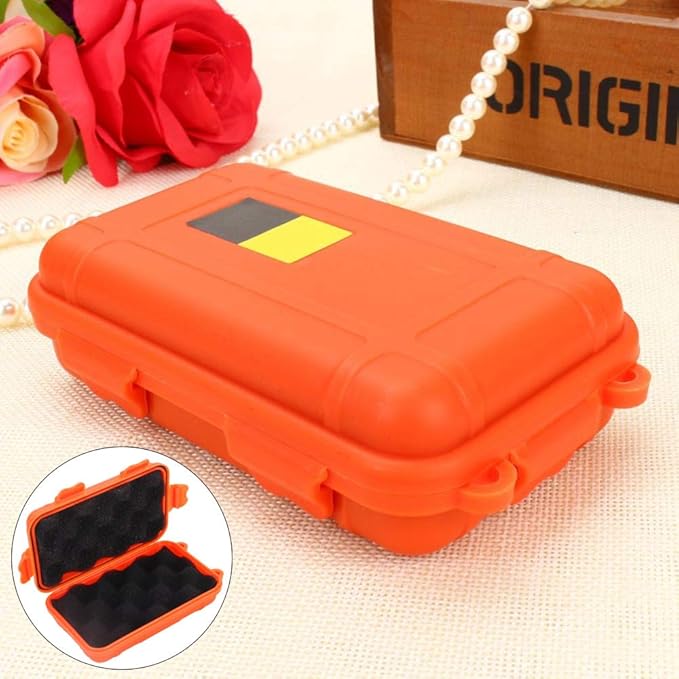 Outdoor Survival Storage Box, Waterproof Shockproof Box Plastic Tool Box Enclosure Airtight Survival Case Container Storage Travel Sealed Containers Carry Box For Camping Fishing (S, Orange)