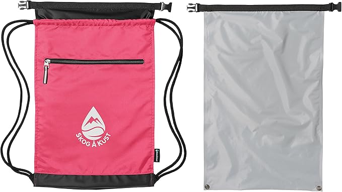 Skog Å Kust GymSak | Patented 2-in-1 Drawstring Cinch Bag with Removable Waterproof Dry Bag | Pink