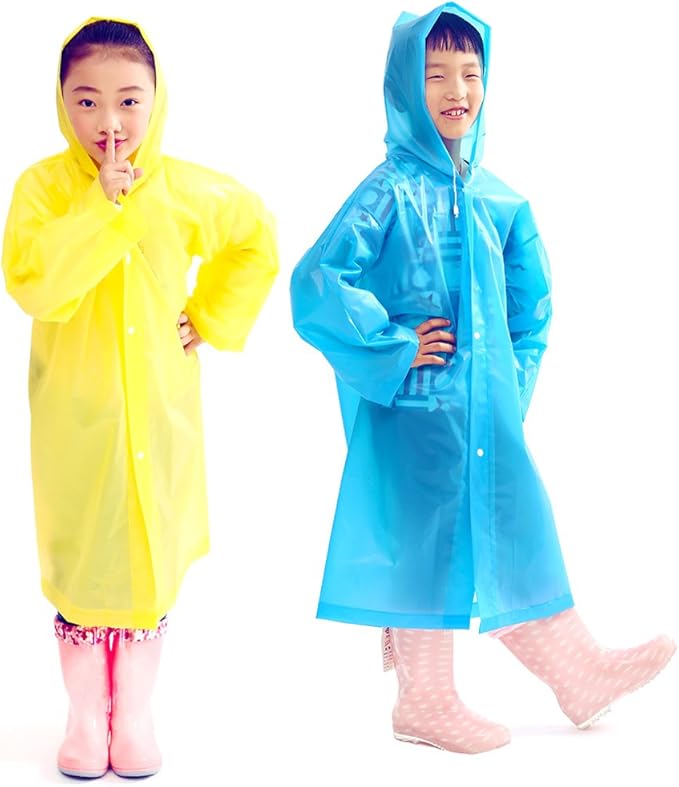 2Pcs Kids Portable Reusable Rain Poncho Children Raincoats Sporting Traveling