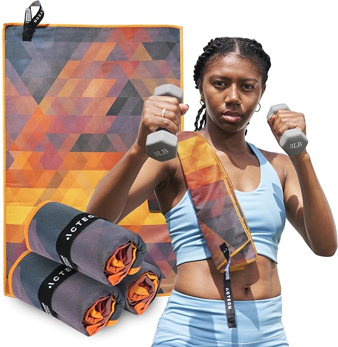 Acteon Quick Dry Microfiber Gym Towel, 4 Pack Odor-Free, Super Absorbent Workout Towels, Body Sweat