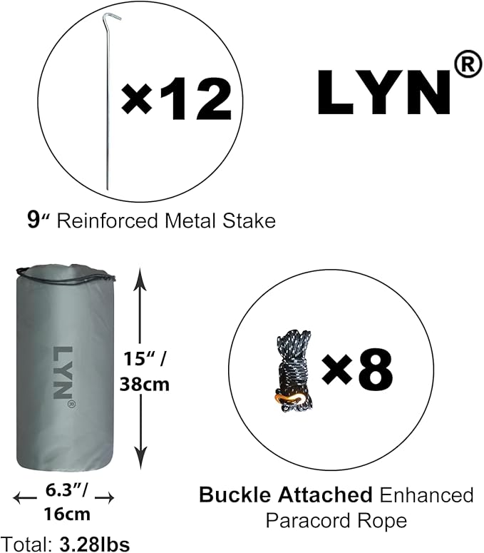 - 💼【6.3"Φ*15" 3.28lbs】Portable Enhanced Clothing Bag. 12 Enfoldment Buckles, Along With 8 Metal Buckle Attached Paracord Ropes and 12 Additional Reinforced Stakes.