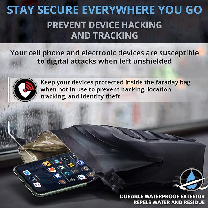 - ✅ RF SIGNAL SHIELDING - Faraday bag blocks WiFi (2.4 & 5GHz), Bluetooth, cell signals including 5G networks, GPS, RFID, and radio signals from low MHz to 40GHz. Prevents device hacking, tracking, spying, and chain of custody corruption. EMI, RFI, EMF radiation shielding.