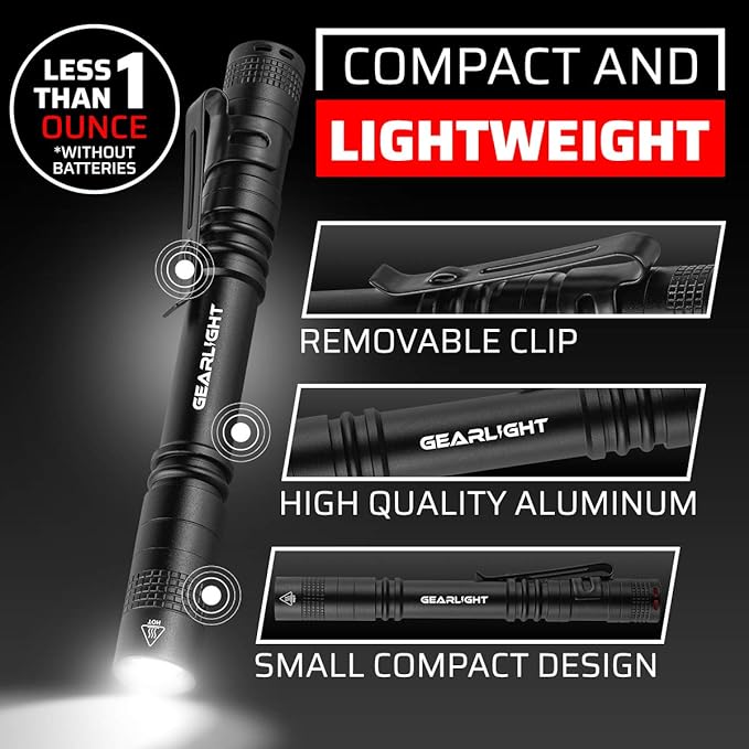 GearLight S100 LED Pocket Pen Light- 2 Small, Compact Flashlights with Clip for Tight Spaces, Police Inspection, Nurses & Medical Use