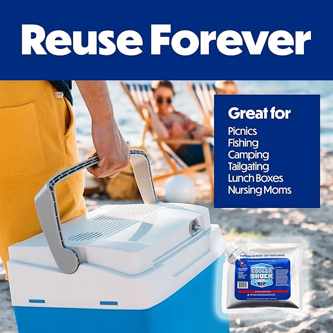 Cooler Shock Reusable Ice Packs for Cooler - Long Lasting Cold Freezer Packs for Coolers and Lunch Boxes - Cooler Ice Packs for Camping Gear, Fishing, Road Trips, Beach Must Haves