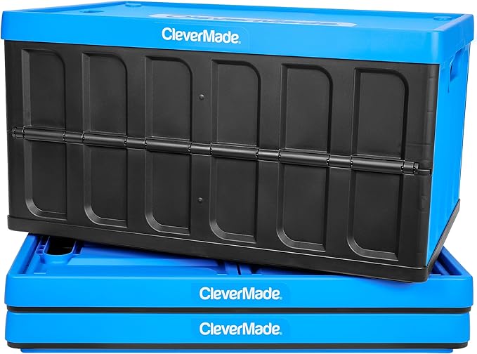 CleverMade Collapsible Storage Bins with Lids- Neptune Blue 3Pack 46L- Plastic Container Stackable Organization Crates Home Closet SpaceSaving Durable