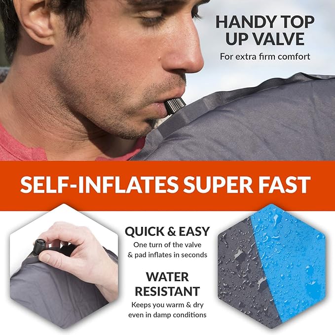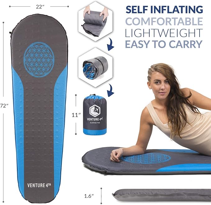 VENTURE 4TH Self Inflating Sleeping Pad - No Pump Required, Easy-Inflate - Warm, Quiet, Supportive Mattress for a Comfortable Night's Sleep - Compact Ultralight Mat - Ideal For Backpacking and Camping