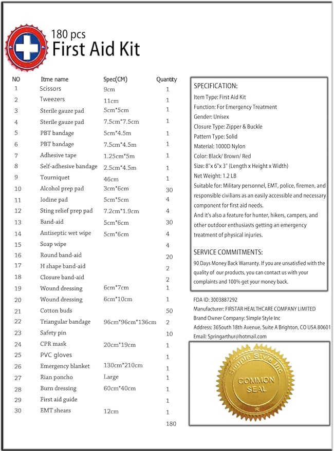 - ★INCLUDED: 180 piece essential medical supplies for backcountry expeditions. Be Desmond Thomas Doss saving your family and friends in an emergency.