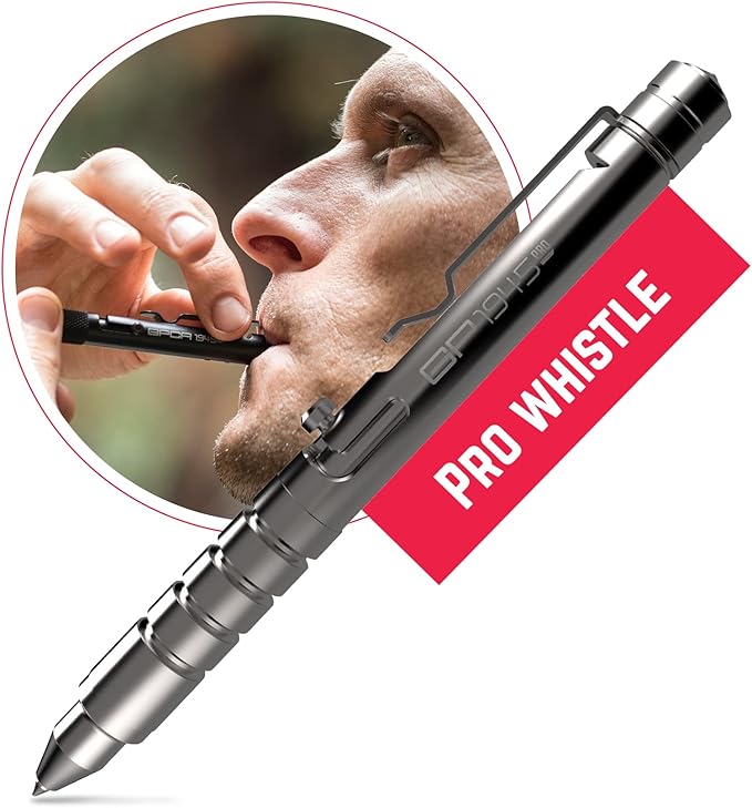 - Your 3-in-1 EDC Essential - Complete your EDC collection with this survival pen. Far more impressive and functional than a cheap penlight or pen flashlight, this camping multitool doubles as a whistle and can be used for breaking glass during emergencies.