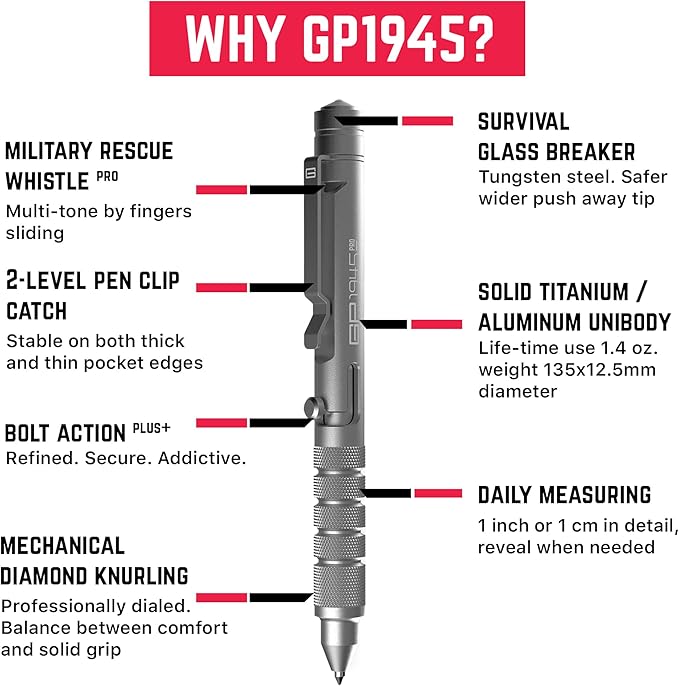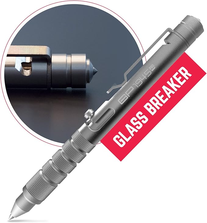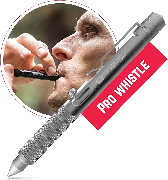 GPCA - GP 1945 Bolt Action Pen PRO, Smart Alternative to a Pen Light, EDC Pen Multitool with Rescue Whistle, Measurement on grip, Survival Gear for Camping, Aluminum, Space Silver