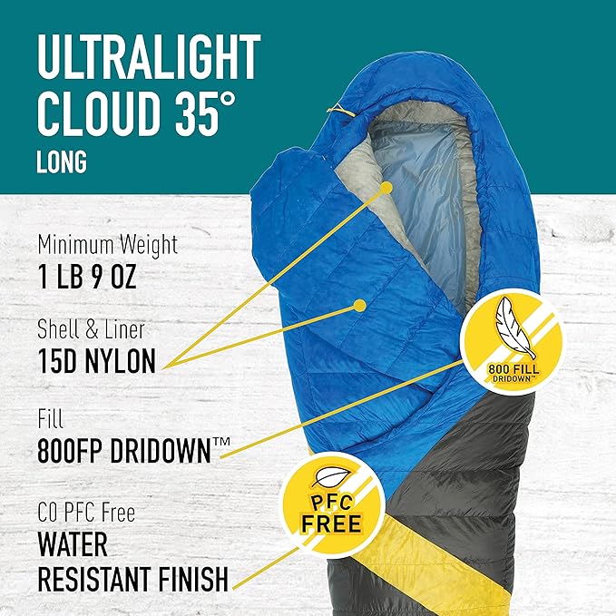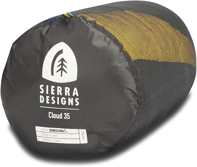 Sierra Designs Cloud 35 Degree DriDown Sleeping Bag Ultralight Zipperless Down Sleeping Bag for Backpacking and Camping