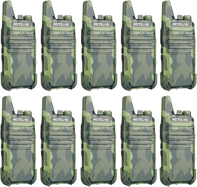 Retevis RT22 Walkie Talkies Rechargeable, Portable Two-Way Radios Long Range, Camouflage, Mini, Lightweight, VOX Hands Free, Handheld 2 Way Radios for Adults Hunting School Restaurant (10 Pack)