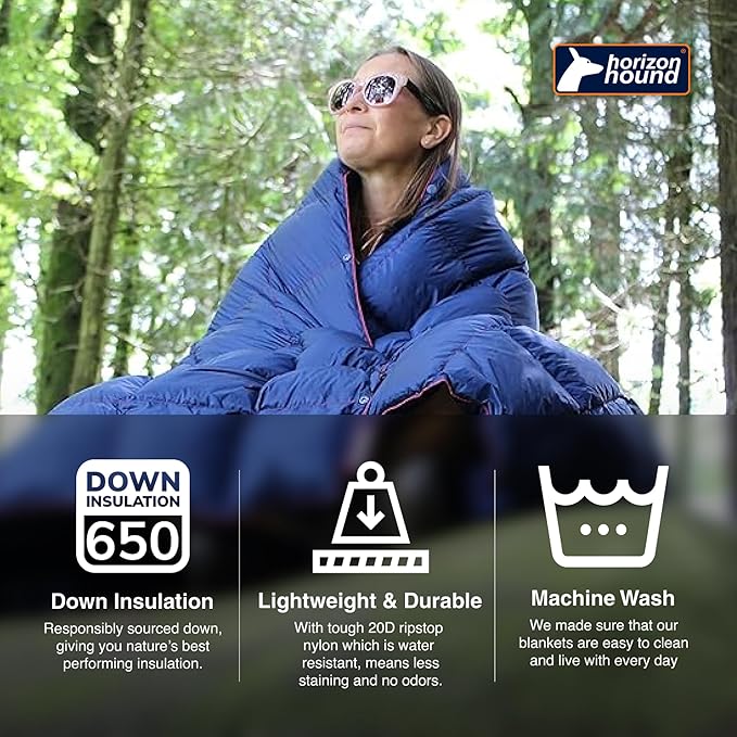 Horizon Hound Down Camping Blanket - Outdoor Travel Quilt | Sustainable, Insulated, Lightweight & Warm Gear for Sleep, Camping, Stadium, Hiking & Festivals | Water Resistant, Packable & CompactB079TP4KTS