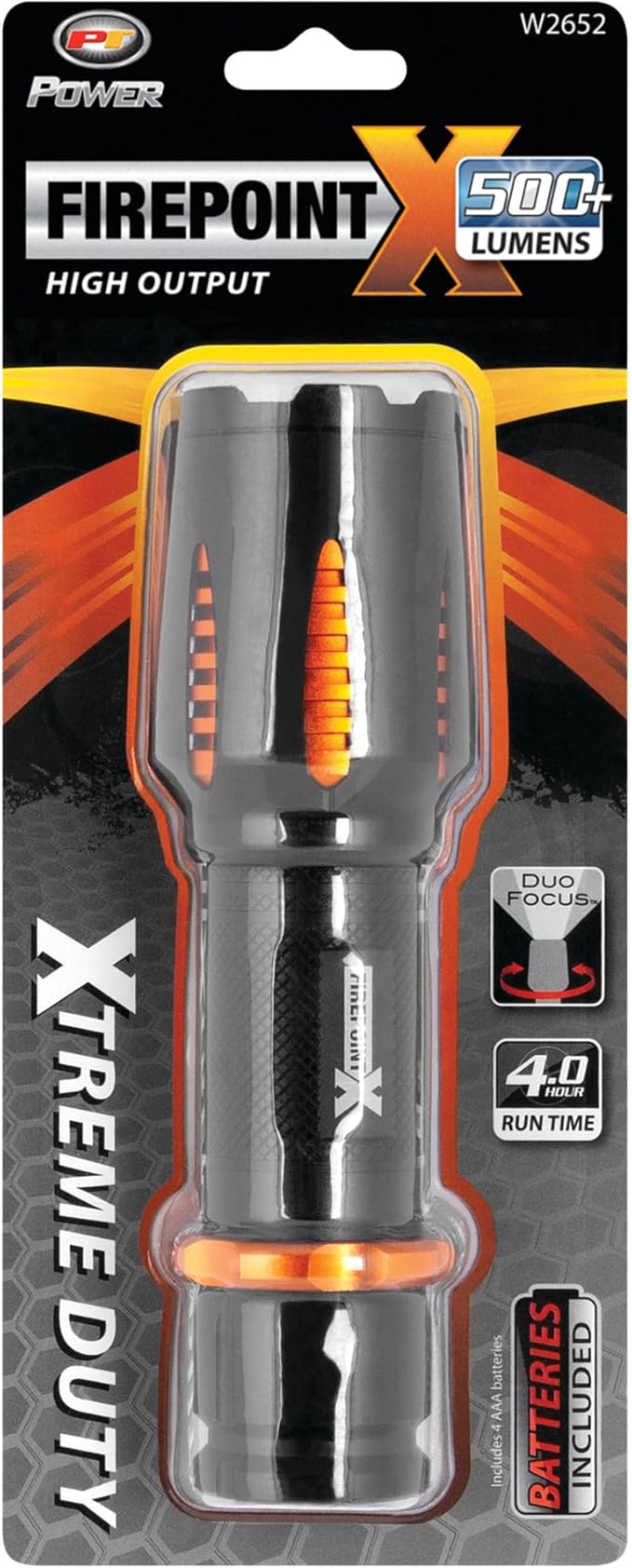 - SPECIFICATIONS: 538 lumens on high, 162 lumens on low, 4-hour runtime on high, 8-hour runtime on low, 4000cd, 126m beam, 139mm total length; Requires 4AAA batteries (included)