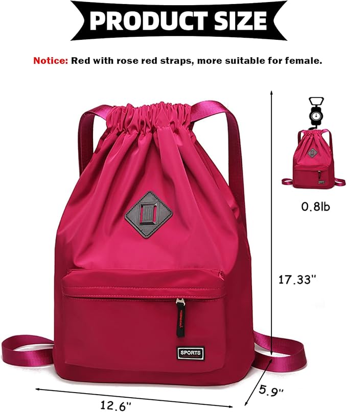• Drawstring closure (Notice: Red with rose red strap, more suitable for girls)