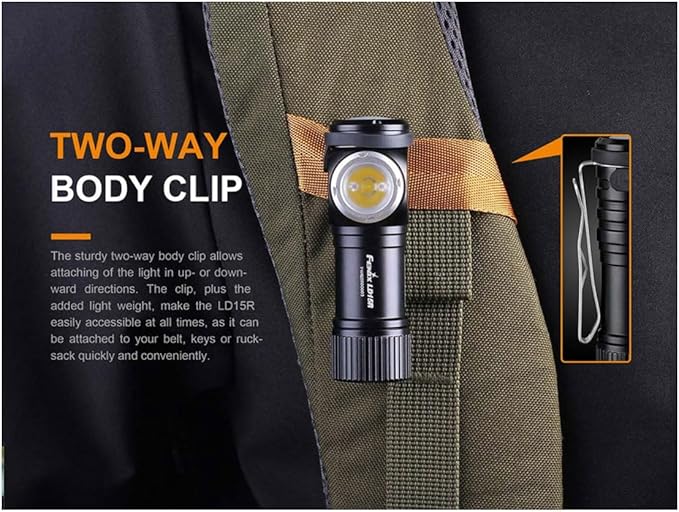 Fenix Flashlights, LD Series LED Flashlight, Model 15R, Right Angled Rechargeable, 500 Lumens, Black
