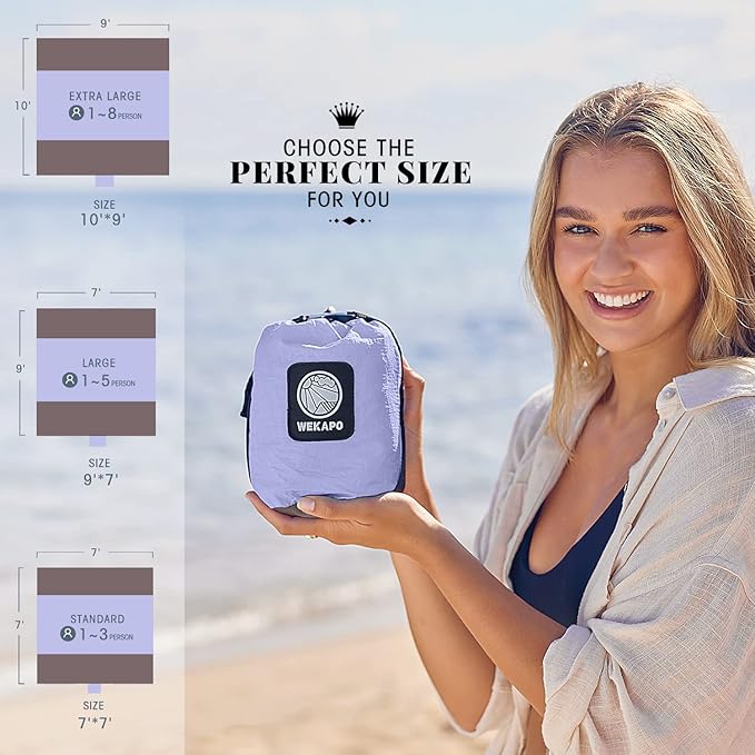 WEKAPO Beach Blanket Sandproof, Extra Large Beach Mat, Big & Compact Sand Free Mat Quick Drying, Lightweight & Durable with 6 Stakes & 4 Corner Pockets