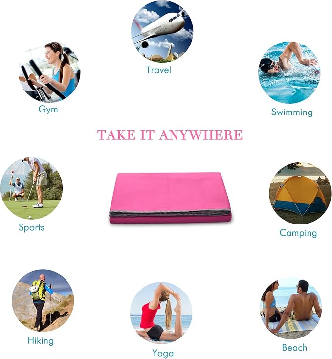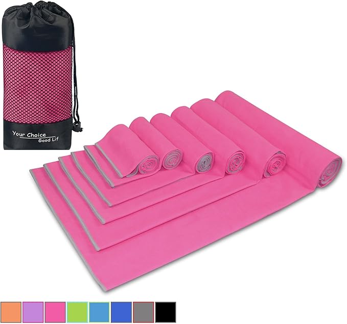 - A VARIETY OF CHOICES FOR YOU - We have 6 sizes and 8 colors of these microfiber towels for multipurpose and any adventure. No matter you want a small face towel , an absorbent gym towel, a ultralight travel towel, a compact camping towel or an oversized beach towel, you can find the suitable one, or combine any sizes and colors to a towel set for different purpose. Different colored seams make the sport towels look more stylish