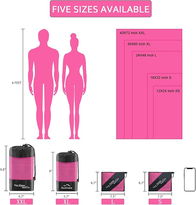 Your Choice Microfiber Travel Towel, Fast Drying Towel for Camping, Travel, Beach, Gym, Backpacking, Sports and Swimming. Sweat Absorbent, Lightweight and Ultra Compact
