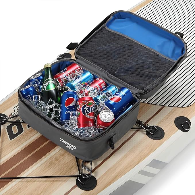 - 【Long-Lasting Chill】Triple-layer construction: high-quality waterproof PVC exterior, ultra-thick aluminum insulation foil, and leakproof PVC interior, ensuring your drinks and food remain cold for the duration of your paddleboarding adventure, even under the sun. Ideal for SUP trips, beach outings, and outdoor activities.