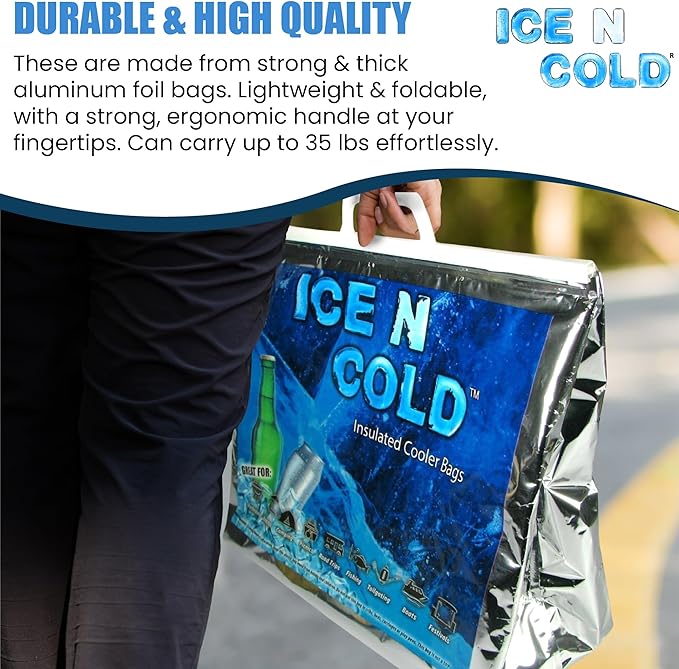 - Durable: These are made from strong and thick aluminum foil bags. Lightweight and foldable, within easy reach of a strong and easy-to-grip handle, and can hold up to 35 lbs of items. Easy to clean and durable. We don't compromise on quality.
