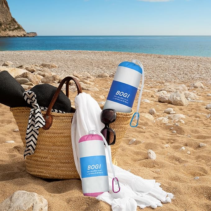 - Microfiber,Super Soft Material: BOGI microfiber beach towel is made of microfiber. The material is eco-friendly, no faded and no smell. High quality microfiber make it totally smooth and soft. It has special characteristics–super soft, quick dry ,absorbent and sand free.The microfiber towels for beach can be also as a sports&travel towel or as a mat for beach,bath,pool,swimming,boating,spa, water park, mountaineering,fitness, yoga,travel, camping,hiking,picnic,travel,outdoor&sport.